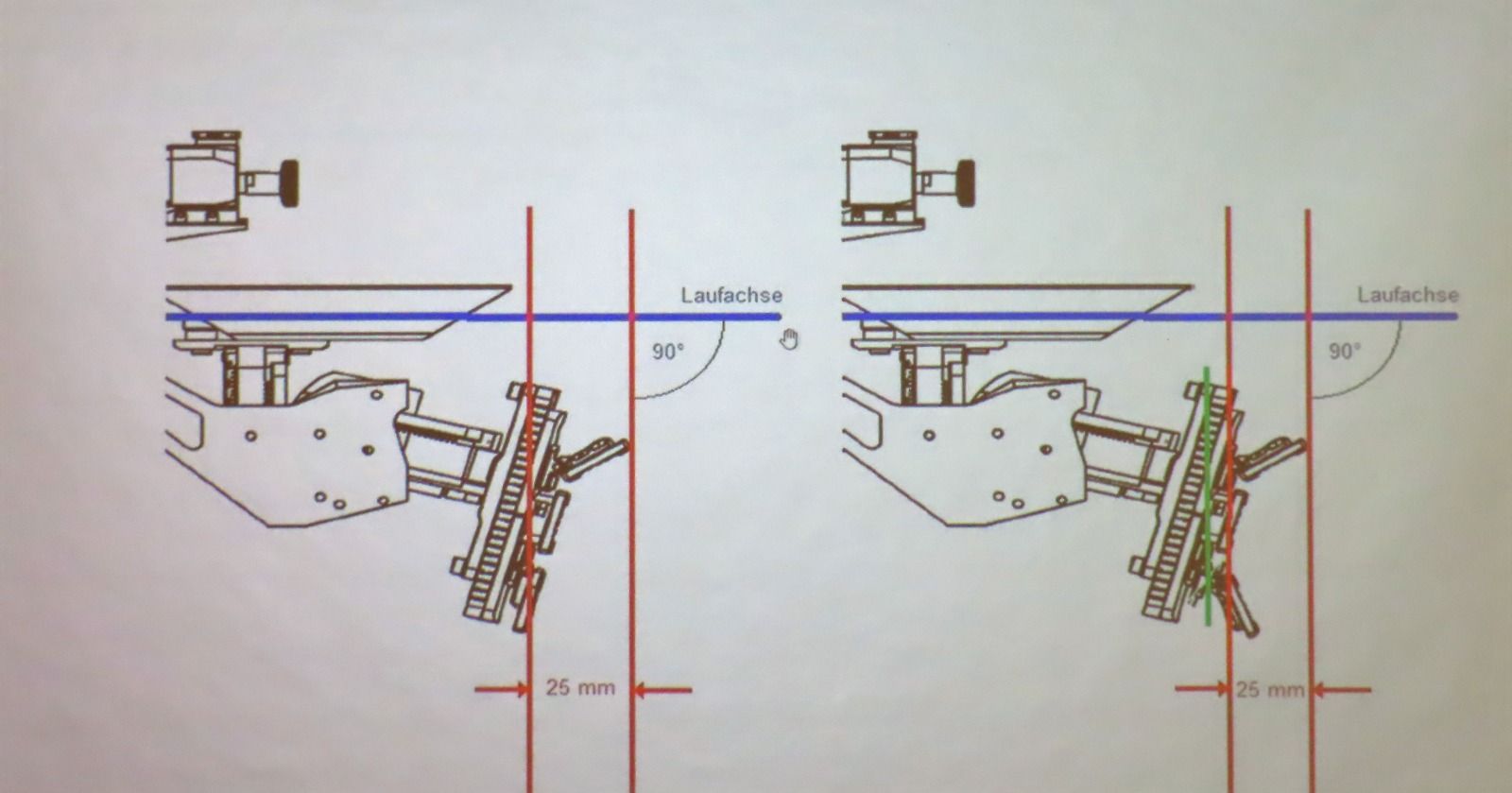 Da eine offizielle, textliche und bildliche Beschreibung der Bemaßung seitens des DSB bislang noch nicht vorliegt, hat sich die Landessportleitung im Nachgang zu der o.a. Sitzung zunächst auf folgende Formulierung festgelegt: „Die Neigung des oberen Flügels der Schaftkappe darf das Maß von 25 mm nicht überschreiten. Gemessen im rechten Winkel zur Laufachse ist die ausgehende Senkrechte am entferntesten Punkt des oberen Flügels anzusetzen. Die entgegengesetzte Linie ist am tiefsten, untersten Punkt der Schaftkappe anzusetzen.“