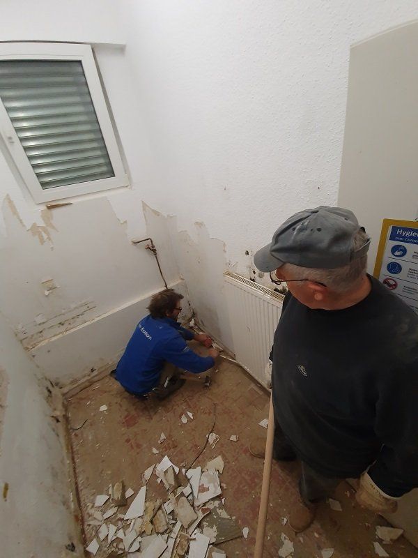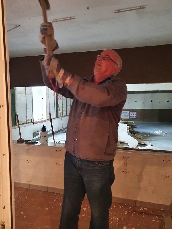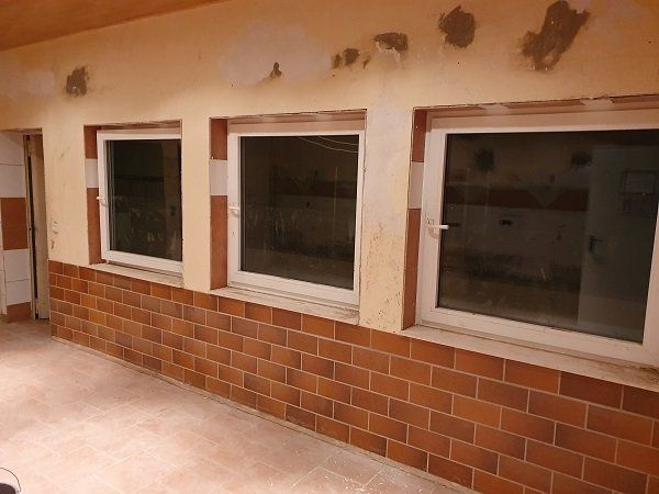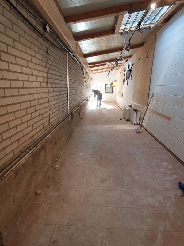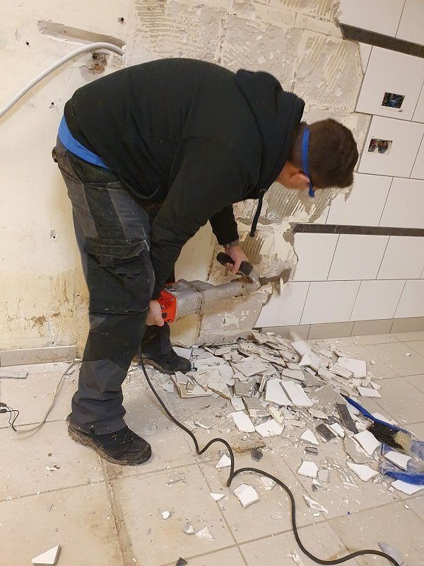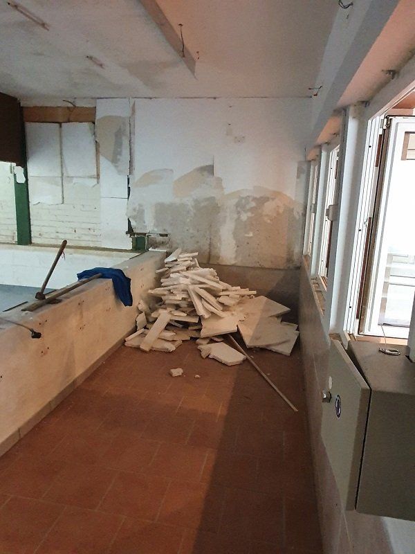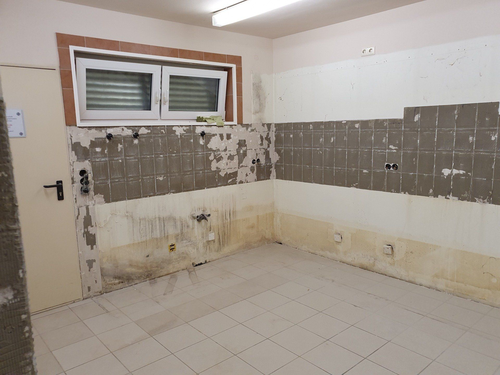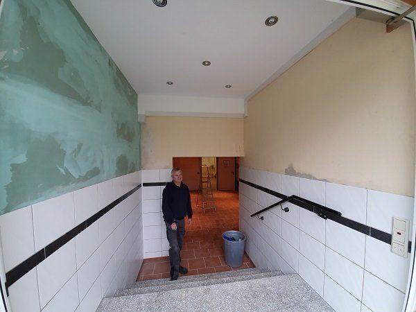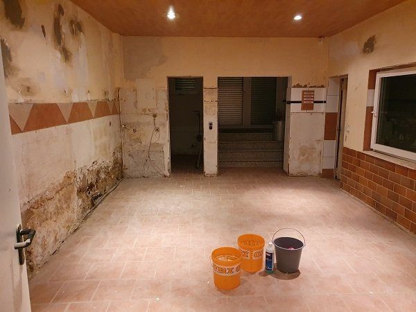 - Entfernen der Fliesen im Bereich der Halle (Theke)