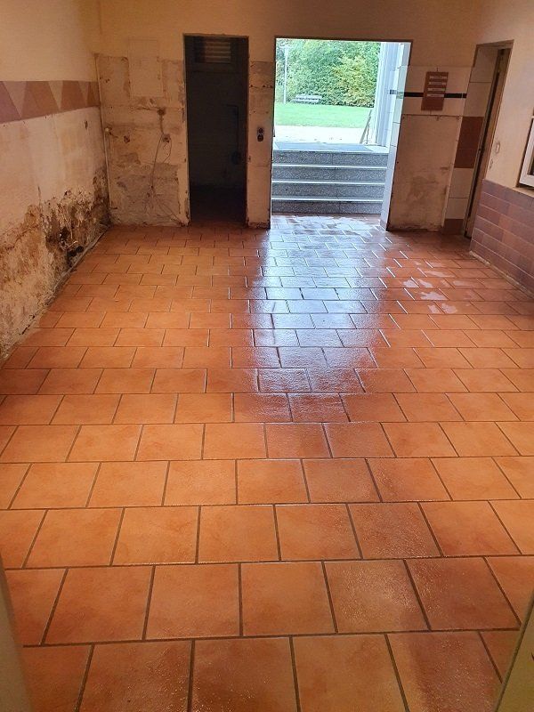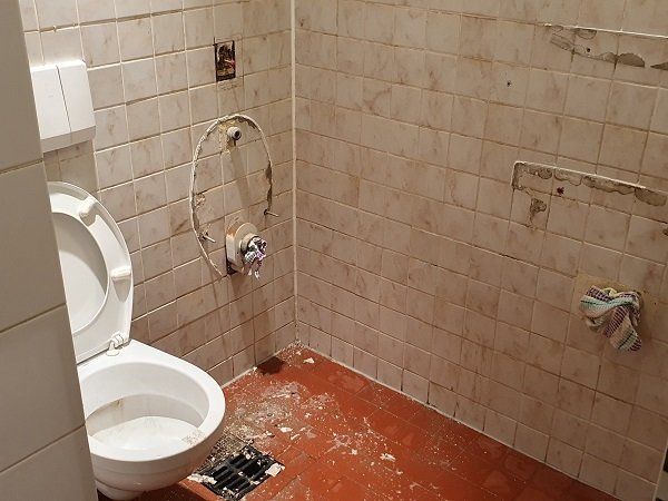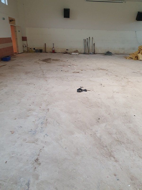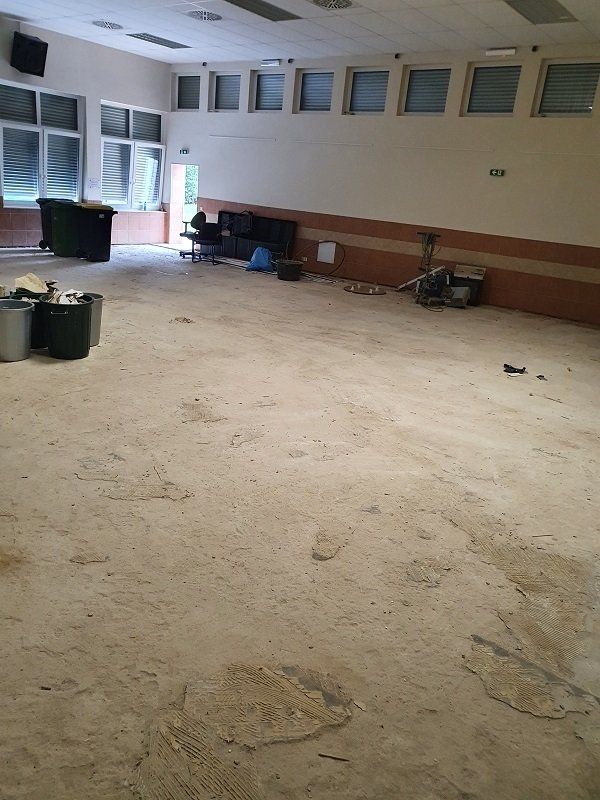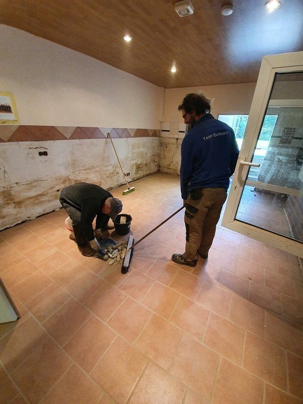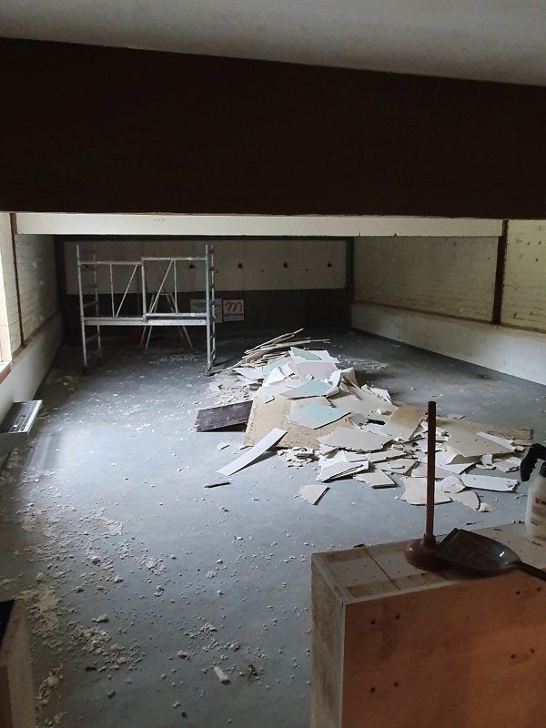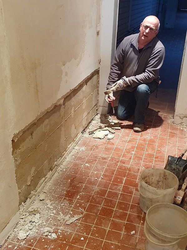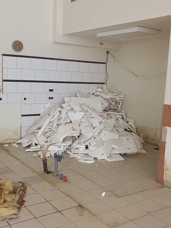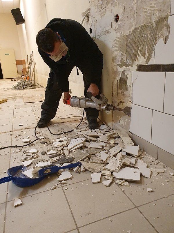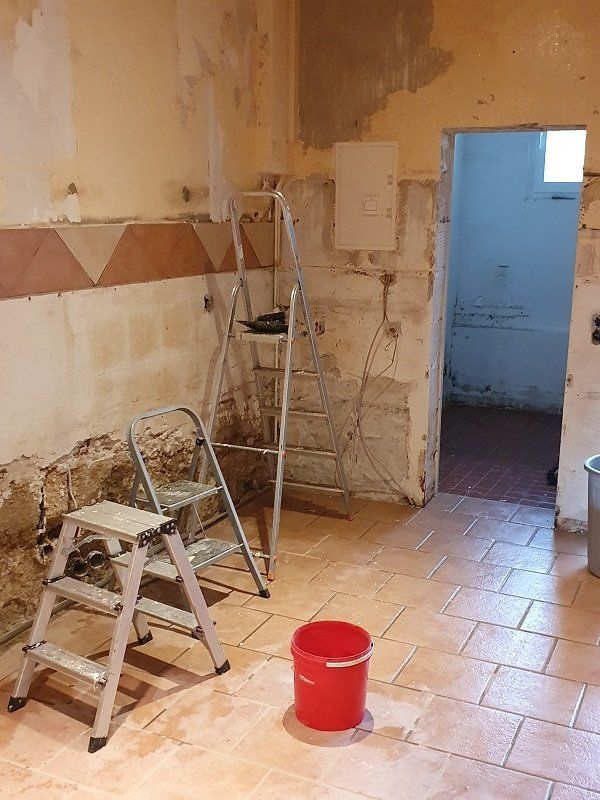 - Entfernen der Fliesen im Bereich der Halle (Theke)