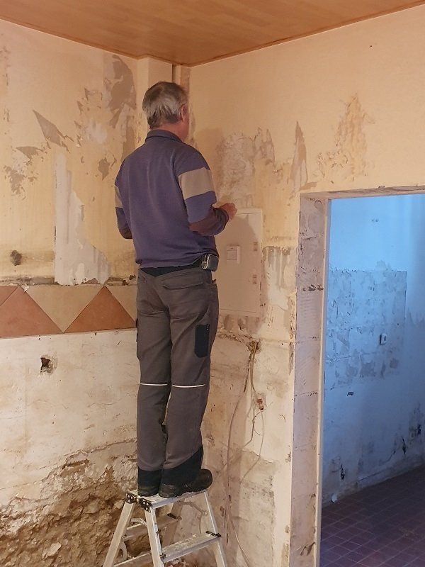 - Schlitze Stämmen für die neuen Zuleitungen im Thekenbereich