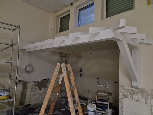 Wird in der KW.21 die Decke in das Dach der Theke einziehen.
