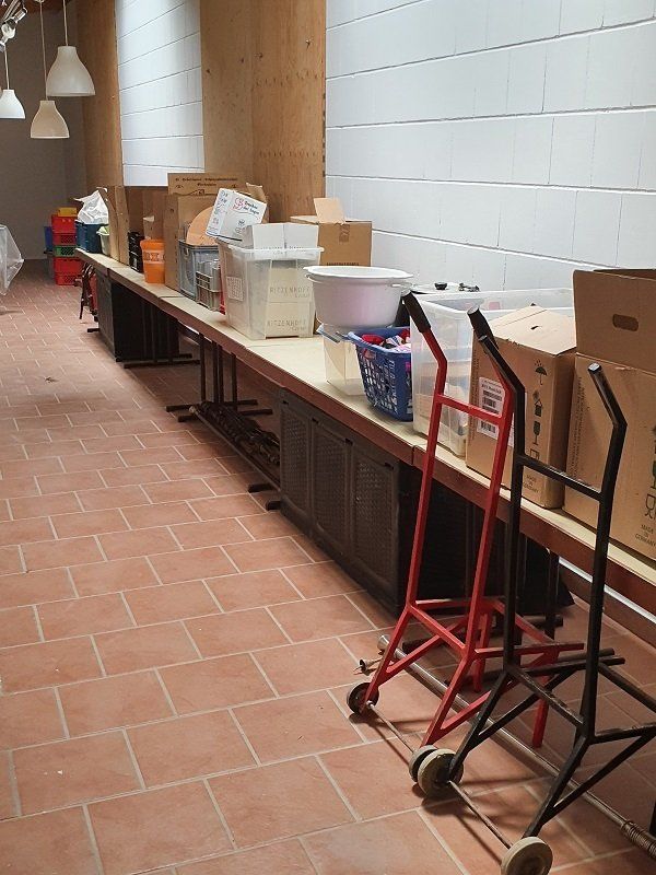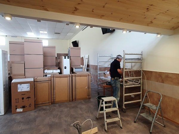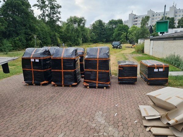 Fa. HOS GmbH Küchenbau: Die Möbel und Gräte wurden geliefert für die Theke und die beiden Küchen, der Einbau soll ab dem 14.07.2022 beginnen.