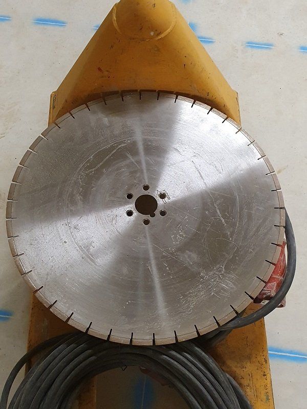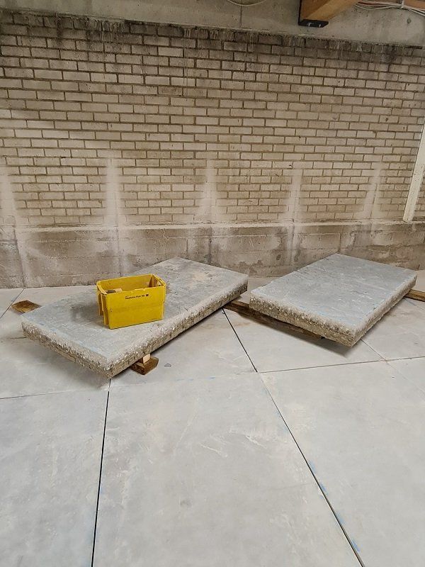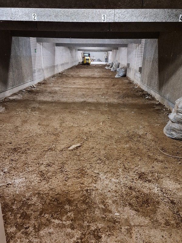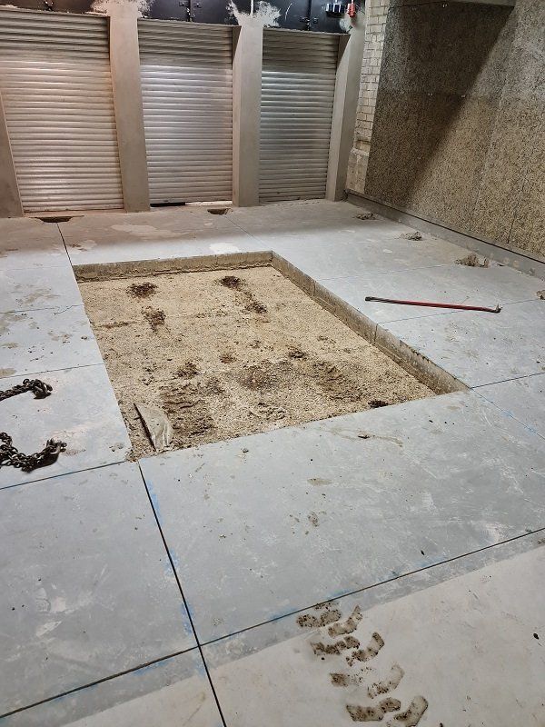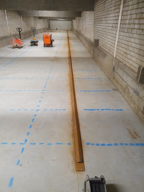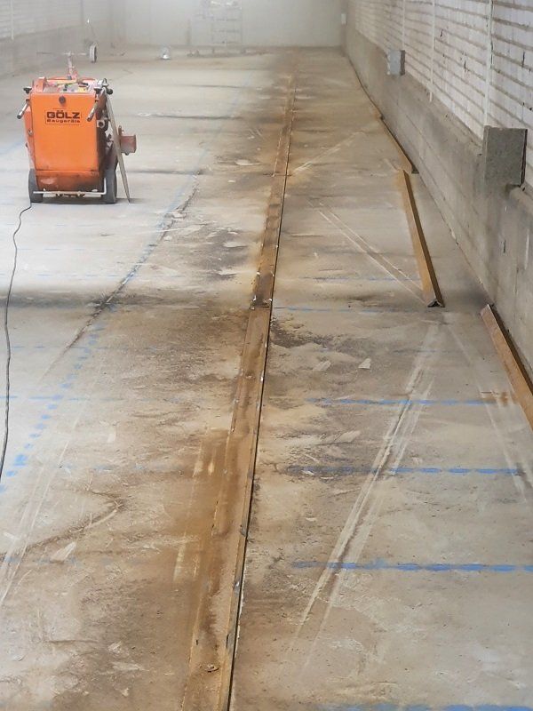 Fa. Weiler: Die Bodenplatte des KK-Standes wurde vollständig aufgesägt. Die gesägten Bodenplatten