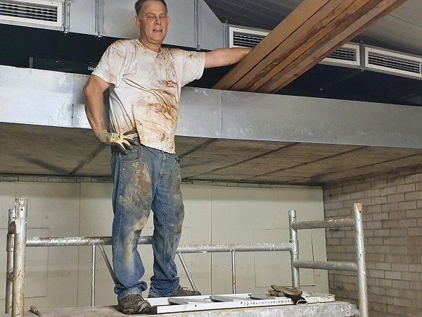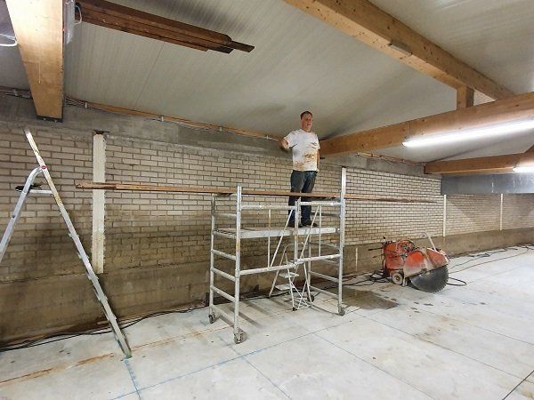 Fa. Lanzerath: Der Boden in der Heizungszentrale, die Wände im Waffenraum und 25 Meter Versammlungsraum wurden fertiggestellt.