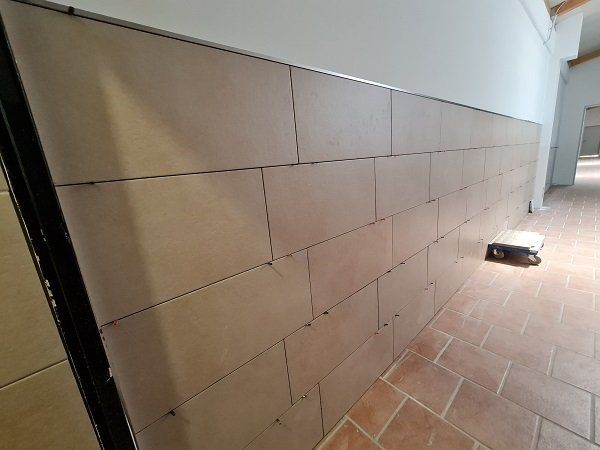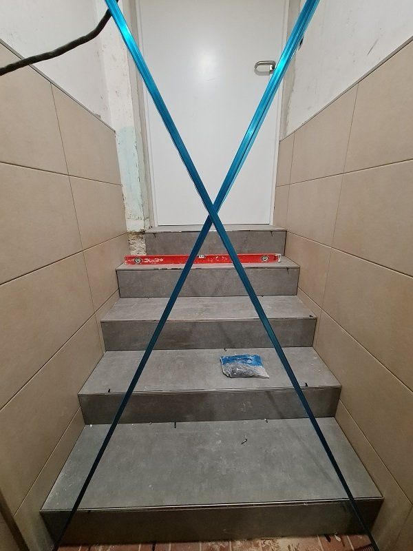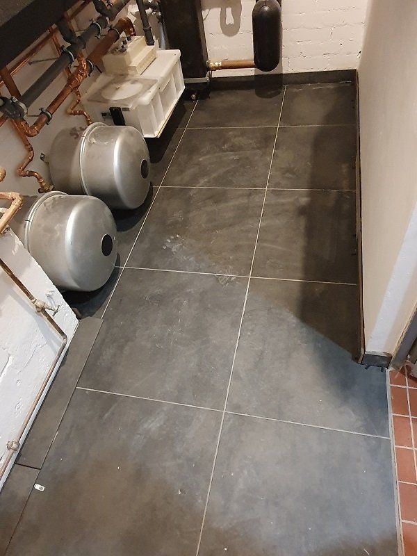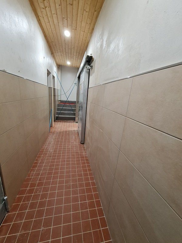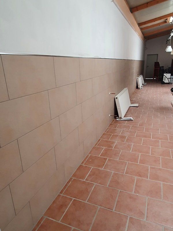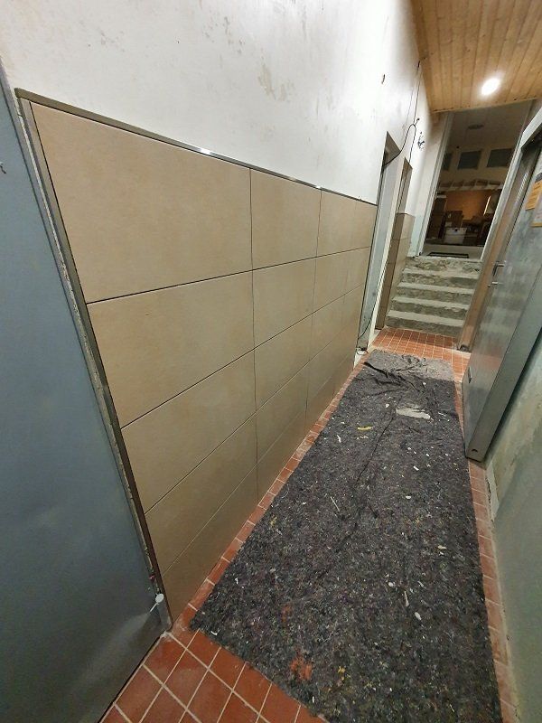 Fa. Lanzerath: Hier wurde der Flurbereich mit der Treppenanlage fertig gefliest. Der Boden der Heizungszentrage wurde begonnen, sowie die Fließarbeiten im Waffenraum.