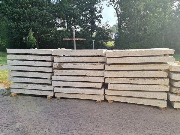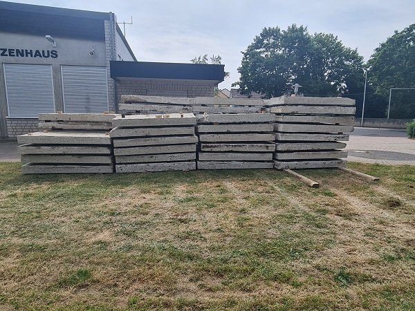 (Gewicht pro Platte 400 KG) wurden aus dem KK-Standgehoben und vor der Schützenhalle deponiert.