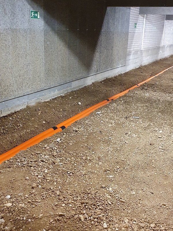 Fa. Weiler: Hier sind die Aufbauarbeiten für den neuen KK - Betonboden begonnen worden. Die neue Bodenhöhe wurde angepasst, sowie ersten die Gräben für die Drainagerohre gezogen worden. Diese dienen zur Entwässerung, des Grundwassers unter der Betonplatte.
