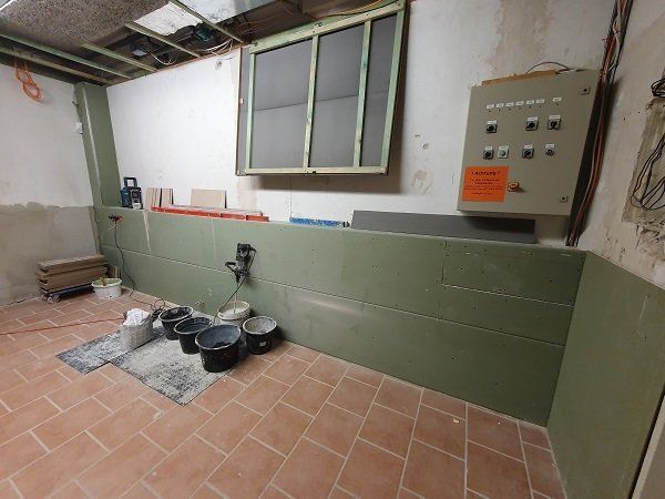 Fa. Lanzerath: Hat mit den Fließarbeiten in den beiden Toilettenanalgen im Schießstand begonnen.
