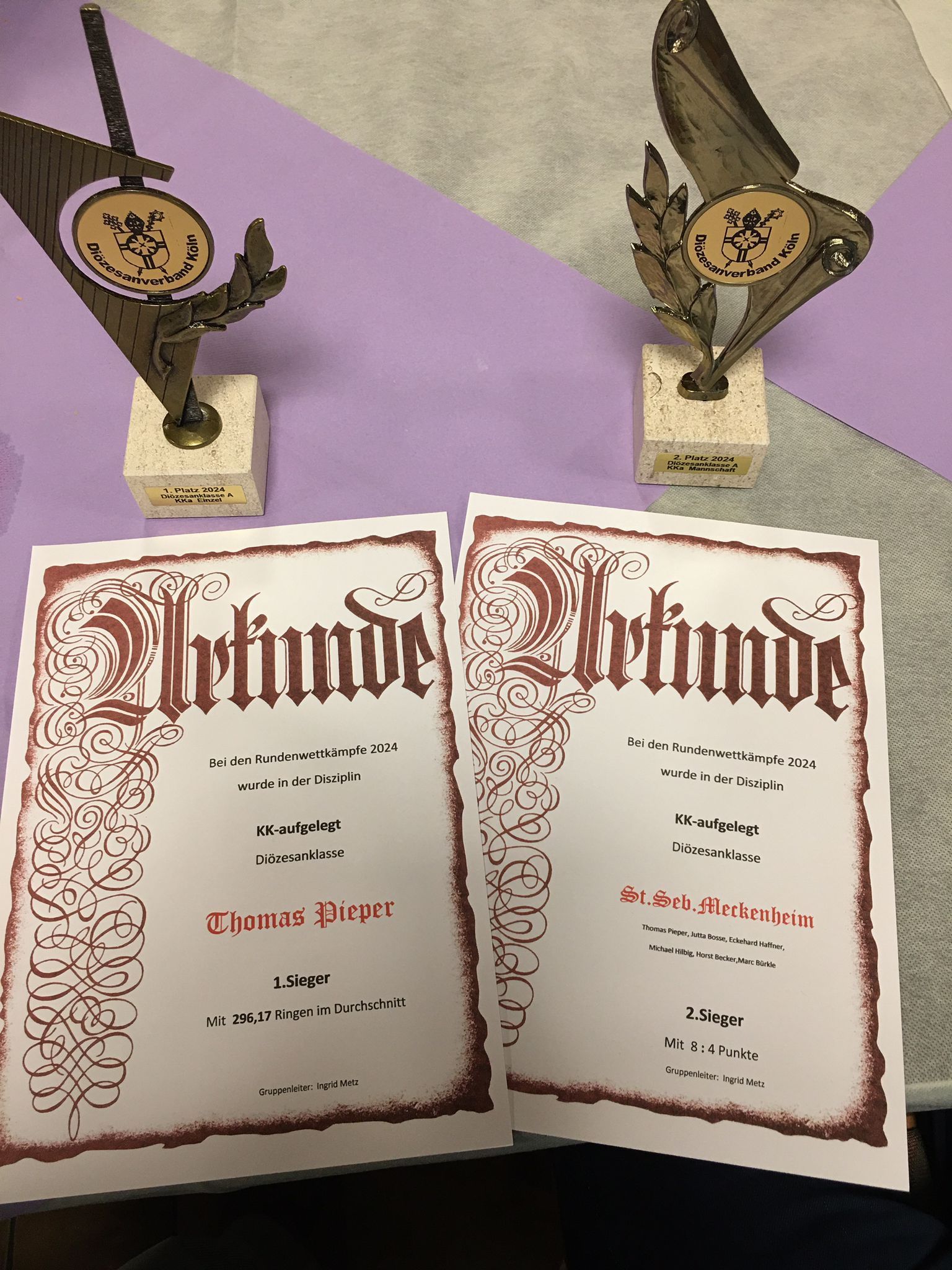 In der Diözesanklasse A belegte Mauritius Bachem mit 9:3 Punkten und einem Ringdurchschnitt von 1164,5 Ringen den ersten Platz, gefolgt von Sebastianus Meckenheim mit 8:4 Punkten und einem Ringdurchschnitt von 1165,33 Ringen.
