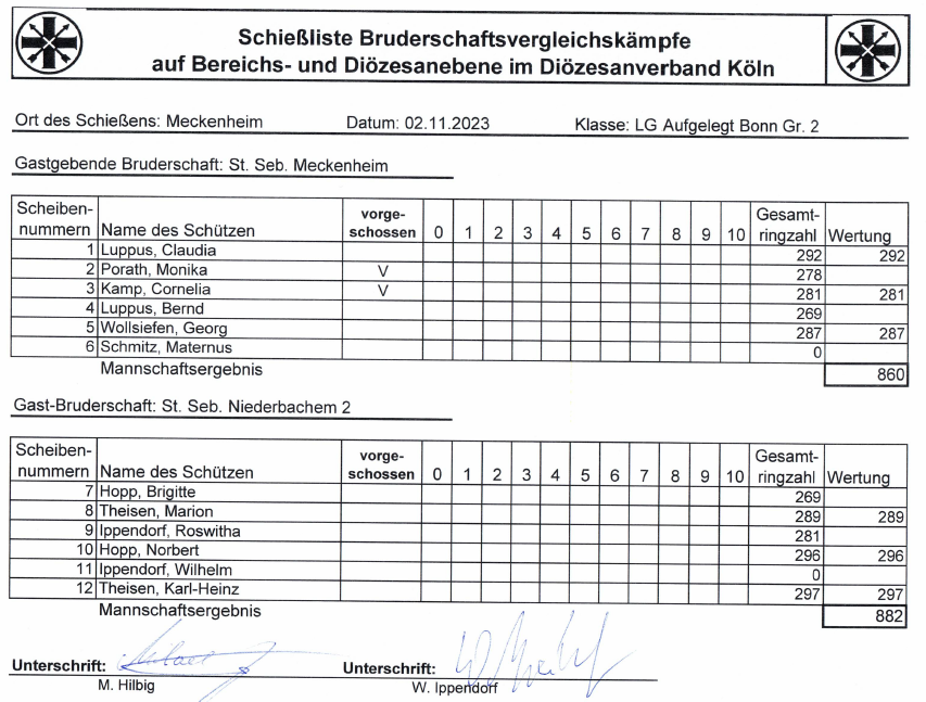 St. Seb. Schützenbruderschaft Meckenheim 870 Ringen und 0 Punkte