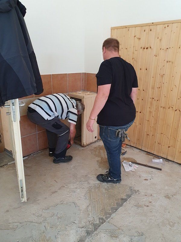 - Entfernen der Fliesen im Bereich der Halle (Theke)
