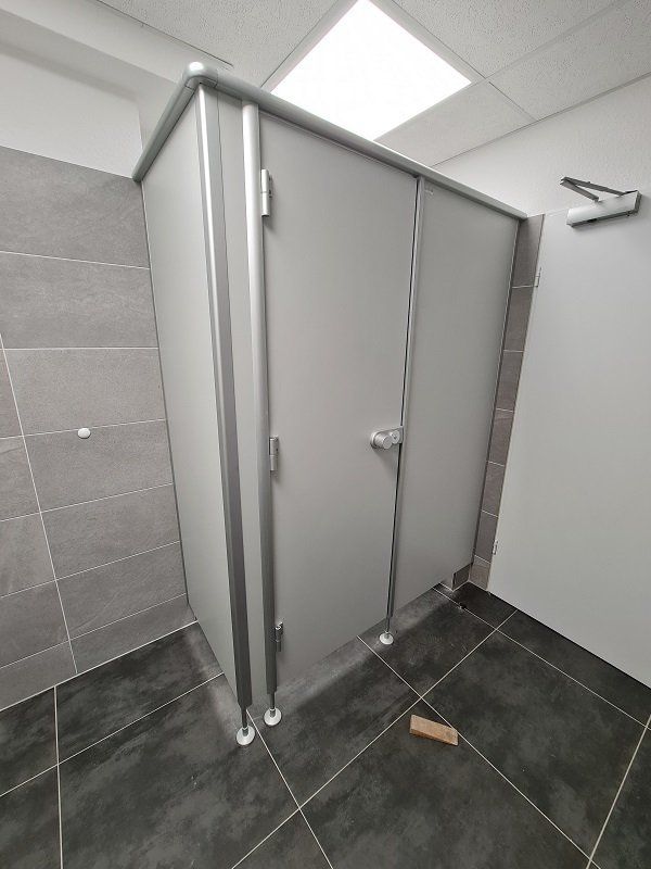 Fa. Fischer: Hat die Fertigmontage der WC-Anlagen Halle abgeschlossen und die Trennwandsysteme sind montiert.