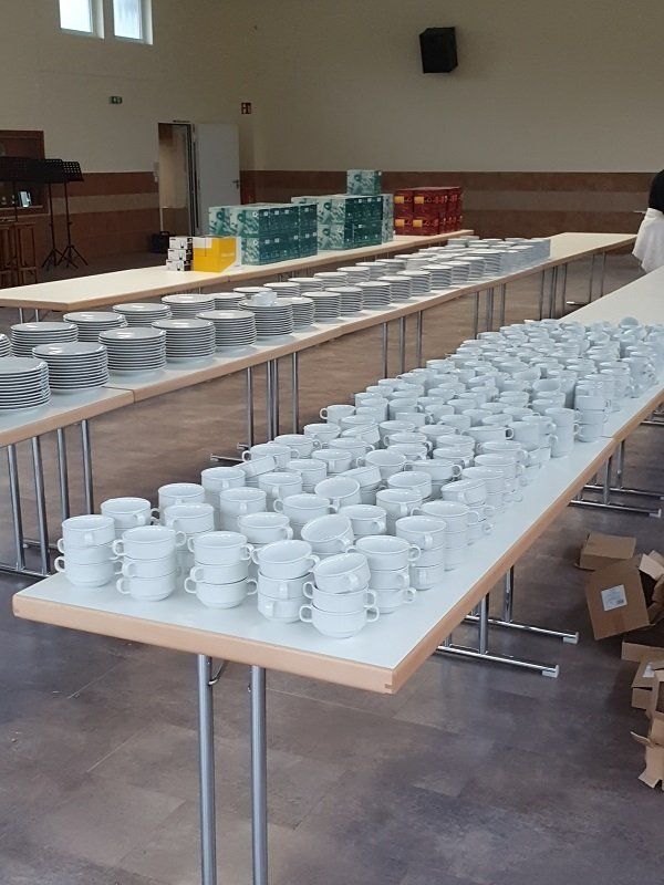 - Das neue Geschirr, Gläser und Besteck wurden ausgepackt.