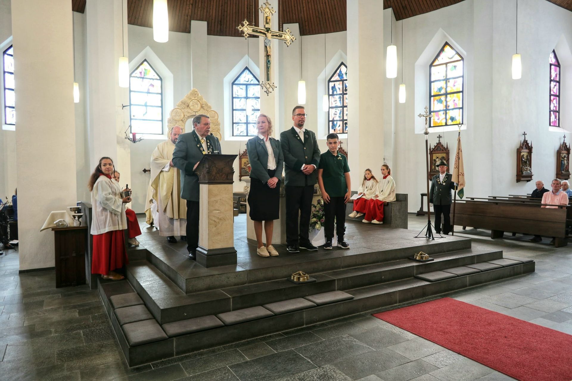 Der Sonntagmorgen stand ganz im Zeichen der neuen Majestäten. Unter Mitwirkung des Musikzuges der Stadtsoldaten Meckenheim ging es vom Schützenhaus in die Pfarrkirche, wo Präses Michael Maxeiner gemeinsam mit Neupriester Thomas Backsmann die Krönungsmesse zelebrierte. Im Anschluss an die Krönungsmesse gedachten die Schützen ihrer Toten und Gefallenen und legten an der Seitenkapelle einen Kranz nieder. Das Schützenfest fand dann am Nachmittag in der Teilnahme am gleichzeitig stattfindenden Bezirksschützenfest in Lannesdorf sein Ende.